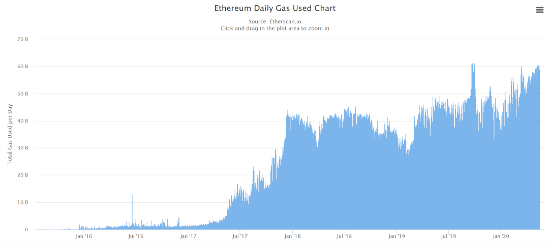 来源:Etherscan.io,以太坊每日使用的gas费。